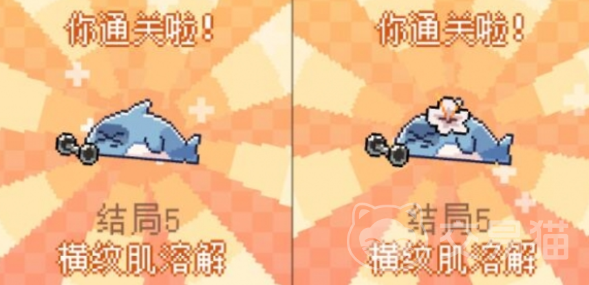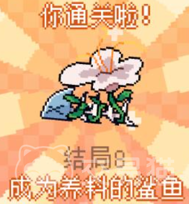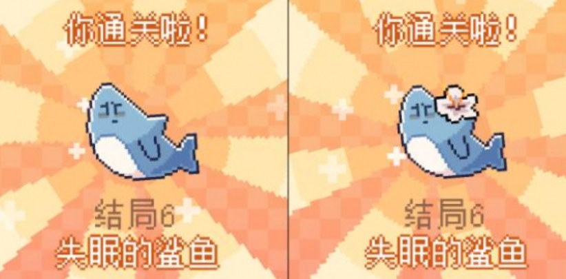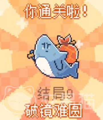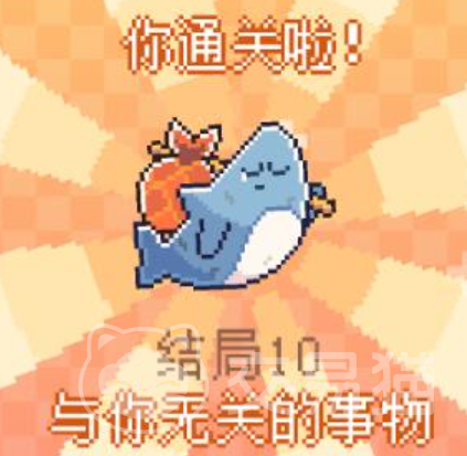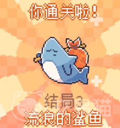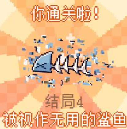 要达成这个结局得先完成1、2、6、11中的任意四个结局,然后点击领养小鲨鱼对话框右上角的X。这时,你会看到一个感谢画面,表示你已经完成了游戏的所有结局。