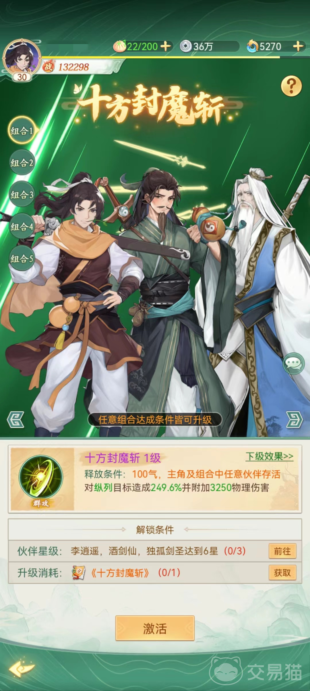 在搭配阵容的时候,当然少不了他的师兄独孤剑圣,之所以这样选择还和主角相关,因为主角合击技能十方封魔斩,就是可以借助酒剑仙以及独孤剑圣这三人一起释放,十方封魔斩是很强的输出技能,对纵列目标造成高额伤害。而且独孤剑圣在输出方面也丝毫不弱,还能和酒剑仙很好地互补起来,如果酒剑仙是单体爆发的顶级角色,那么独孤剑圣就是群体攻击的超一流。利用自身绝技万剑诀伤害敌方全体,还有在自身精力高于55%时候提高物理伤害和物理攻击力的特点,这样在前期也能保证爆发充足。
