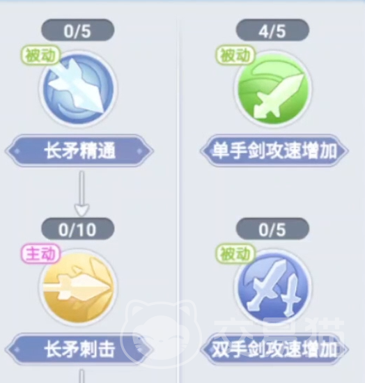 之后可以选择点长矛刺击,这个技能让下一级的攻击的段数和伤害得到提升,玩家们不需要将这个技能给点满,只需要点给4-5级即可。连刺攻击,此技能是让玩家们进行连续的攻击,这个技能的段数很高,并且会受到玩家本身的攻速影响,是玩家们之后非常实用的一个输出技能,可以考虑将其点满。