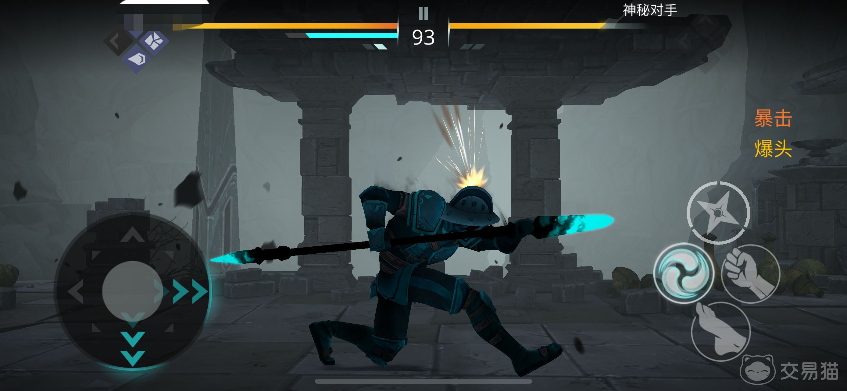 如何判断隐身人的位置从而使用反方向键就成了最大的难点,其实只需要向某个方向一直走一直点普攻,听到声音就可以知道隐身人的大概位置,释放横扫连招的时候它会自动的转身,如果没有释放出来横扫释放出来的是向前刺两下,那就说明敌人在正前方,可以向后拉一点位置等待动作僵直结束释放横扫。