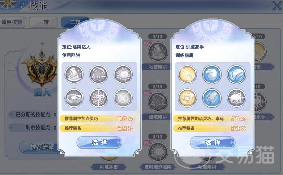 从弓箭手转职到猎人需要完成一系列任务,考验的不仅是玩家的实力还有智慧,以及对各种技能的理解,完成之后获得猎人的荣誉。完成之后将获得新的流派和玩法,掌握一系列实用技能,包括猎杀,侦查,陷阱等,熟练利用这些效果可以在战斗中占据更多优势。属性加点方面,因为本身攻击力就已经非常出色,所以命中就成为了比较需求的属性,命中和物攻都是对猎人输出影响非常大的属性,不管大家接下来走的是召唤流还是陷阱流,都需要有一定的命中率作为基础。