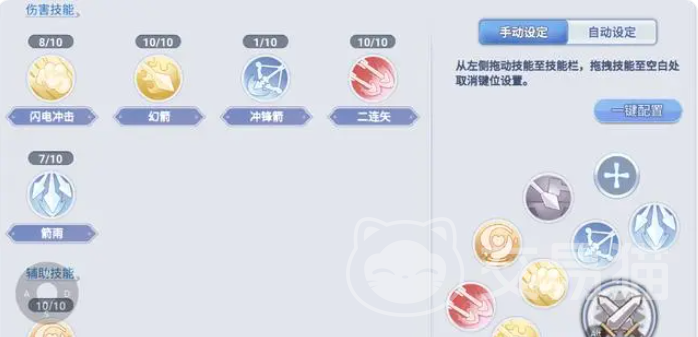 接下来是”猎鹰突击”的主动,除了能够对对手造成攻击之外,而且有一定的概率将猎鹰召唤出来,从而让它对敌人进行攻击,从而可以将造成的伤害进一步的增强。还有幻箭以及二连矢的主动,都可以远距离对敌人进攻,并且造成很大伤害;前者还有击退的效果,而且二连矢能连续对箭矢进行发射,造成额外的伤害。