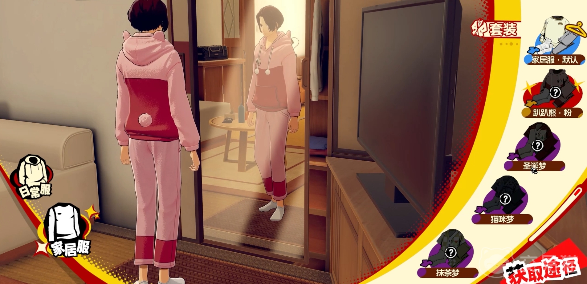 游戏当中,主角默认的黄色校服也是我们最初也是最常接触到的校服。尽管非常的经典,但长时间的游玩的话仍会感觉到有些腻了。这时候就推荐各位玩家可以回到我们主人公的家中,也就是房间卧室的衣柜这里,进行服装的更换。