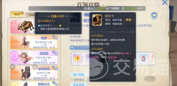 副手武器可以考虑蚁后卡,在这个卡片的加持下,小伙伴们若是受到伤害,可以反弹,还能增加自己的最大生命值。盔甲建议大家使用天使或者幽灵两张其中一张波利卡,当然有高级别的恶魔波利也可以。披风的话可以使用兽人婴儿卡,在免伤和闪避这一方面能提高不少数值。鞋子的话,可以尝试使用月夜猫卡,或者是古埃及王卡。