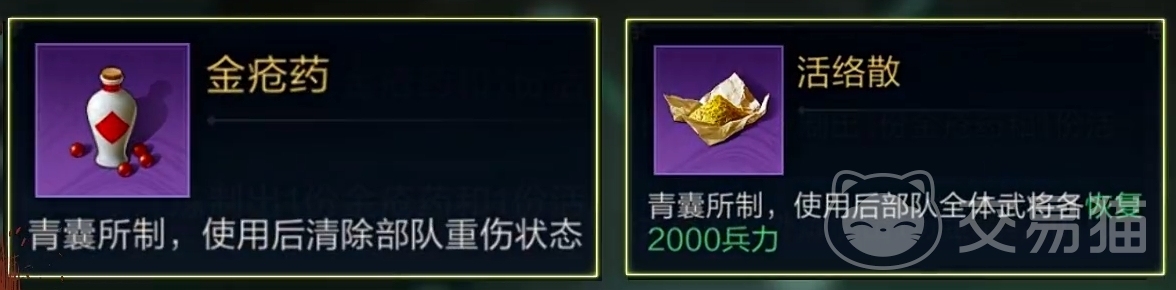 并且在不断的成长进阶之后,还会让我们获取更多其他功能型的丹药。比如说在后期之后可以炼制金疮药,直接清除部队的重伤状态。或者是炼制活络散,来为全体武将恢复兵力,甚至于其天赋强健,还可以让我们在攻占土地之后伤亡率降低60%。