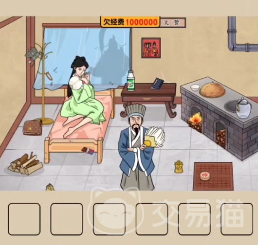 之后我们在墙上找到刘备的结婚照,这个照片的背面有一张欠条。这个欠条也可以抵债,然后地上的草鞋可以将其拖动到墙上刘备大营的牌子上,之后便可以获得刘备牌草鞋。这个也是挺值钱的。