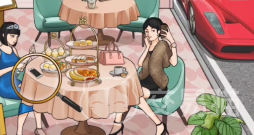 在此关之中,玩家们需要先从场景来进行调查。首先我们可以先点击玻璃,我们可以从玻璃处看到这个地方实际上就是一个快餐店,之后点击告示。告示上写着的是只可以拍照,不可以吃。之后我们来到用餐的两位女士这里,首先可以点击左边女士,发现她的发饰其实是铁的。