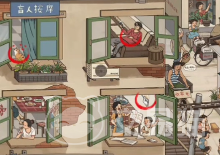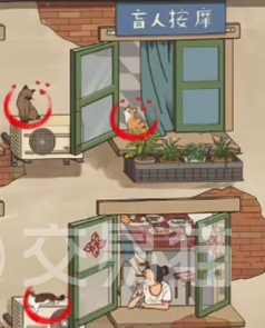 本关的正式名称叫做大院找猫,玩家们需要在院子之中找到12只猫才能通过这个关卡。这里面有几只猫是比较明显的,玩家们基本上从图片上便可以直接找出来,但之后的几种猫会以各种形式出现在图片中,玩家们如果脑洞不够大的话,那么是很难找出来的。