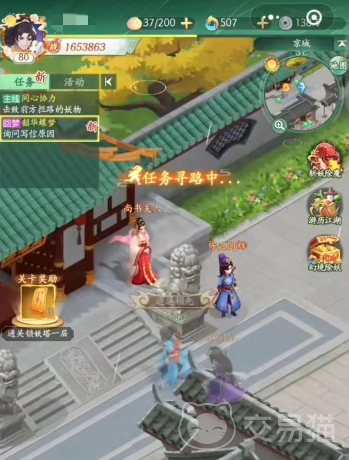 想要找到尚书夫人,大家需要先往前推进主线,一直等到放开京城地图以后才可以来这里找到。夫人和尚书府都位于京城地图中,打开小地图就能看到有尚书府名字,很多玩家在府里找了一圈都没有找到,其实夫人在尚书府的大门外面。这个npc和玩家之间最大的互动就是在剧情韶华蝶梦中拥有互动,以及和一个隐藏成就啃老族有关。