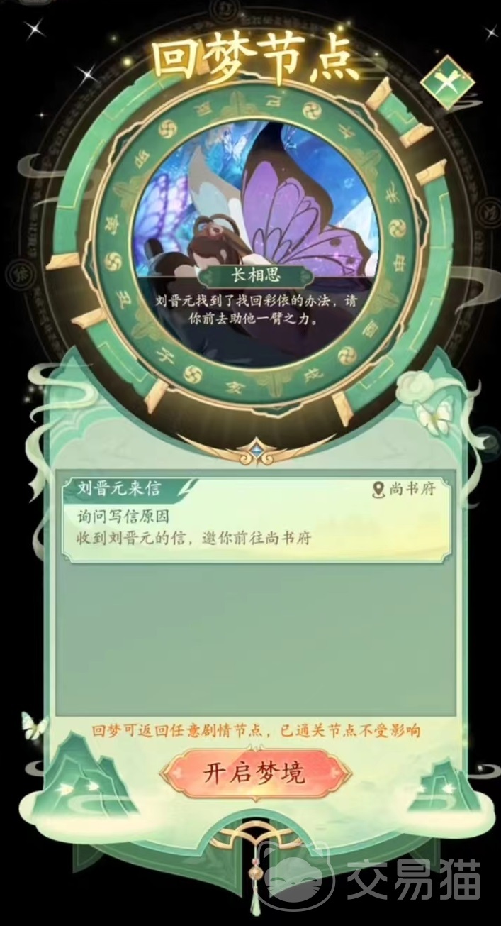 先来说一下这个隐藏成就啃老族,触发需要玩家目前身上的钱数少于10万,然后找到上述夫人之后和她对话,每点一次都会收到夫人给的钱,连续点三次就可以完成这个成就了。很多玩家就是因为身上的钱数过多,所以无论如何都无法触发,一定要先将钱花完,控制好钱数再去尝试。在剧情韶华蝶梦中,触发的原因就是因为尚书夫人想让刘晋元到处散心,所以才在游历过程中发现了彩衣并未真正死去,这才促使整个回梦的发生。