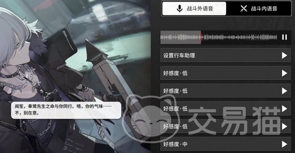就目前已知的信息来看,这款游戏里的好感度系统主要是和语音挂钩的,达到不同程度的好感度会解锁不同的语音台词。从录音界面可以看到目前好感度是分为“低、中、高”三个阶段。