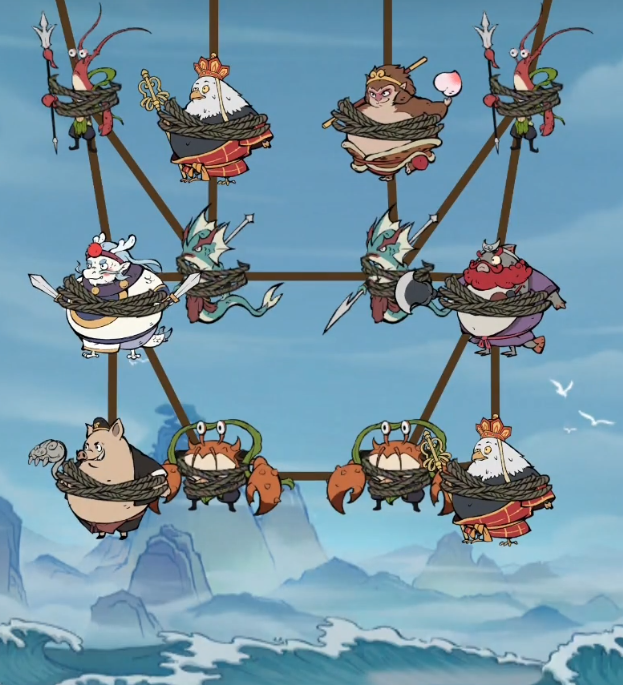 这个救援游戏玩法很简单,我们的需要救援的角色基本上就是西天取经的师徒几人,但是他们和不少的妖怪都绑在了一起,我们需要看好绳子所绑的情况,然后选择正确的方式将绳子给剪断,然后将其解救下来。注意在剪的时候,不要把妖怪和比妖怪弱的人放下来了,不然关卡会失败的。