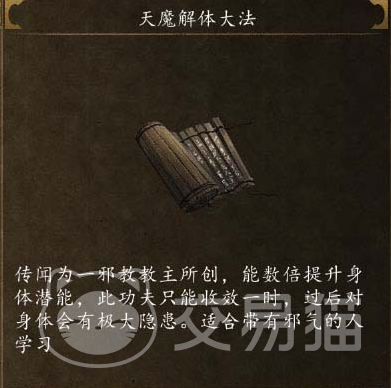 其次就是小伙伴们自己学习啦,小伙伴们不管学习哪一种功法都是可以的,其中就包括天魔解体,只要将自己的攻击力和防御力提升到适合的属性数值搭配上适当的装备就可以学习了,可以将天魔解体当做自己的自由技能去使用。但是要注意前置条件自己准备好,要么提高自己的血量,要么少用天魔解体的次数,以防自己被反噬。
