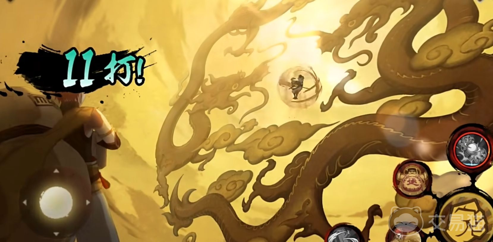 奥义,沙画之术,龙行大运。可以在前方召唤沙子,将敌人包裹成球,造成数段伤害,随后,控制将敌人将其送至天空,最后双爪合璧,形成一幅双龙戏珠的沙画,对敌人造成大幅伤害。伤害水平中规中矩,更重要的是演出不错,很有新春的味道。