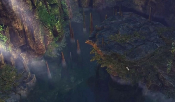 也就是说要先触发第3个洞,然后是第4洞,再是第2个洞,弹奏的顺序和洞中的机关有关。只要按照上面提到的顺序去回答,就可以放下机关,将池子中的水抽走。