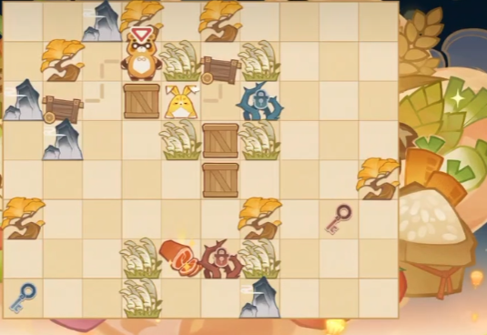 在来到这关以后,大家需要让锅巴去左下边推箱子,推开之后会在下面拿到一个钥匙,拿到以后需要让锅巴原路返回,在返回后可以用钥匙打开原点旁边的障碍物,拿里面的鱼肉,拿完了以后按左下下右右左左上上右回到起点,再从右下下右右右左左下下开始推,推完后即可通关。