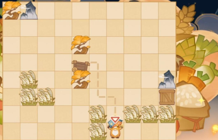 这个推箱子是分关卡的,而谈到关卡,肯定是要一关一关来看的,那首先要带大家看的就是游戏中的第一关三珍赠芳蔼,在这一关中大家需要让锅巴推开箱子,这推的步骤为为右右下下下右右,按这个步骤来推就能通关。