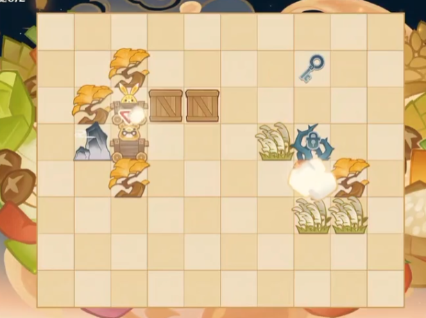 通关后即可拿到第一关的奖励,随后就会自动进入到第二关当中,这第二关叫做游禽蕴温凉,在这一关中大家需要让月桂去给旁边的木箱子推开然后拿钥匙,钥匙拿到后再去拿地图中的鸡腿。