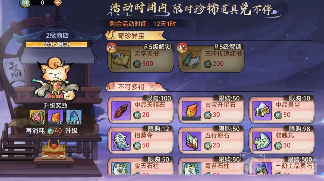 然后就是【五行圣殿】。五行圣殿不会为大家提供灵玉,但是会提供非常多的高阶角色突破材料。如果是急着培养角色的话,那么可以买一下这个来提升自己角色的强度。但是游戏的前期小编还是不推荐大家购买的。