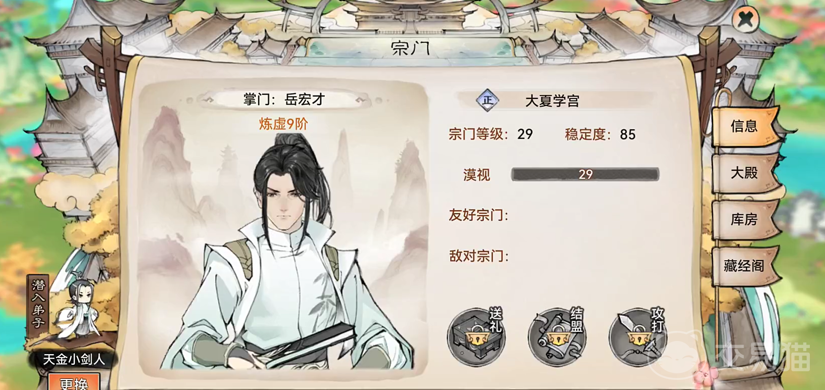 首先是藏经阁。在藏经阁中,大家可以花费一定的游戏资源来购买功法技能书,供弟子进行装配。