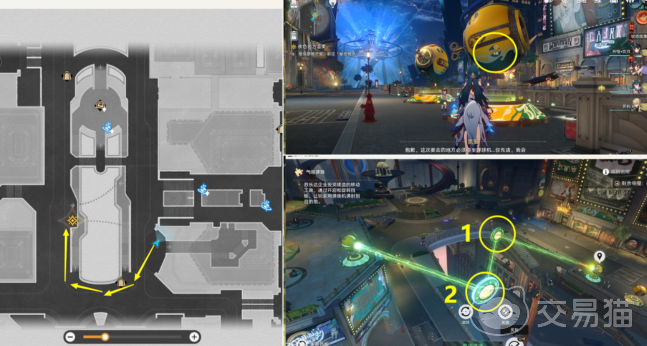 第二个小游戏叫做【气泡弹珠】。大家按照上图的路线进行气泡发射,就能轻松达成任务目标。在一号点开启灯光,然后旋转一下2号点,就可以直接发射了。