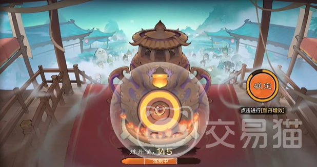 如图上所示,可以看到炼丹已经开始了。在脸蛋的过程中会逐渐积累炼丹值,影响最终的炼丹分数。而炼丹进行到一定程度之后,游戏中央会出现一个【塑丹增效】的字样,接着玩家就需要靠自己的反应力点点点了。
