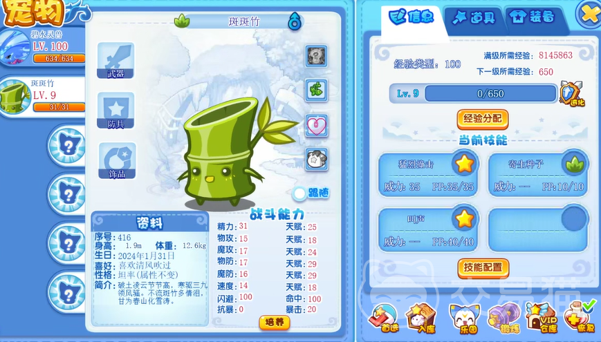 第二个推荐玩家们选择【圣萌王者】,由于在游戏中,宠物的定位也都不一样,而圣萌王者自身的攻击数值属于比较平衡类的,从面板上来看!除了 魔法攻击比较短板之外!