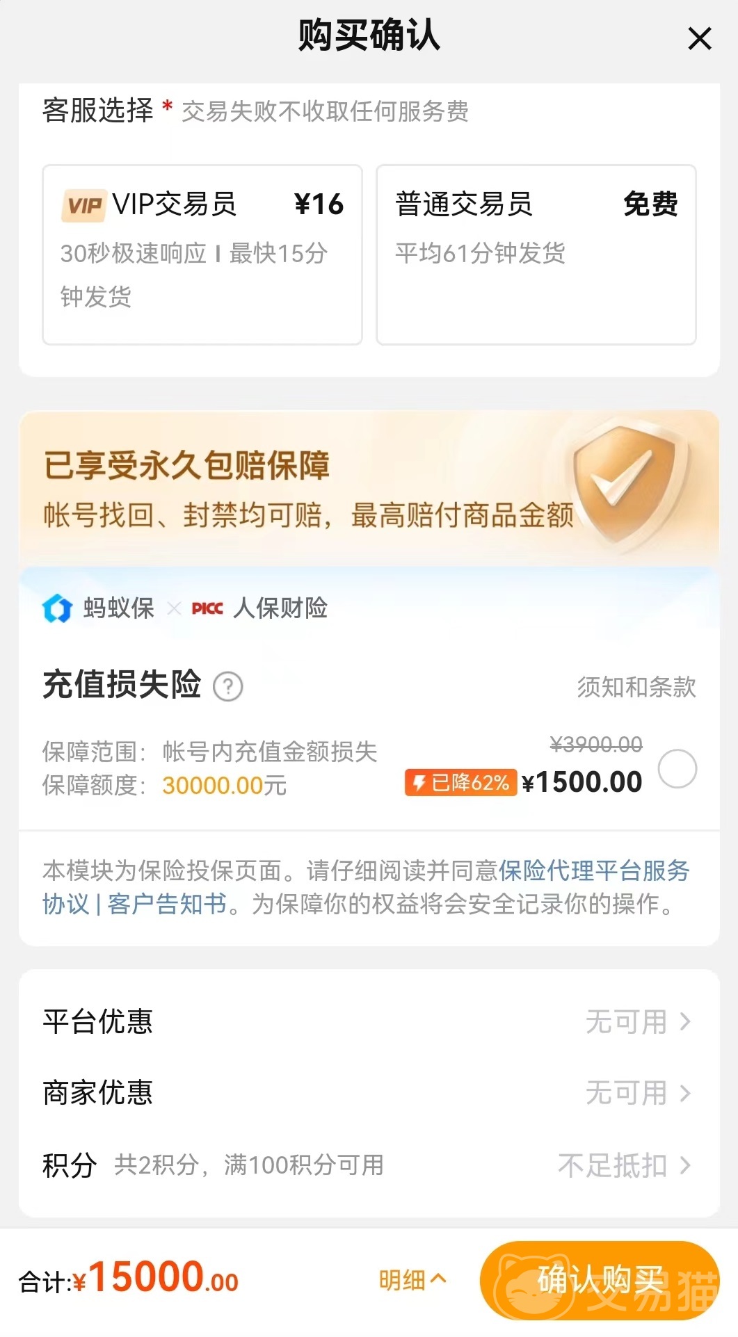 价格方面,平台中所有商品都是公开透明定价,有完善选择和排序机制,可以帮助大家将性价比高的显示在前端。另外在最后结算的时候,除了商品本身之外,如果没有选择添加保险或者是 Vip交易员,那么只会收取商品本身费用,手续费不会购买者承担,最后也会有详细明细,不会出现乱收费情况。如果手中有足够的平台积分,还能享受一定程度的抵扣。