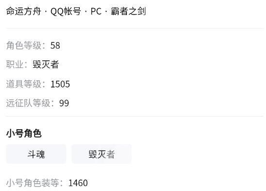 以上就是命运方舟卖号平台分享,当角色达到一定级别之后,你就会发现没法再去提升了,或者没有动力去改造角色了,这时,与其将账号闲置,还不如挂到交易猫上出掉,这样做还能回回血。