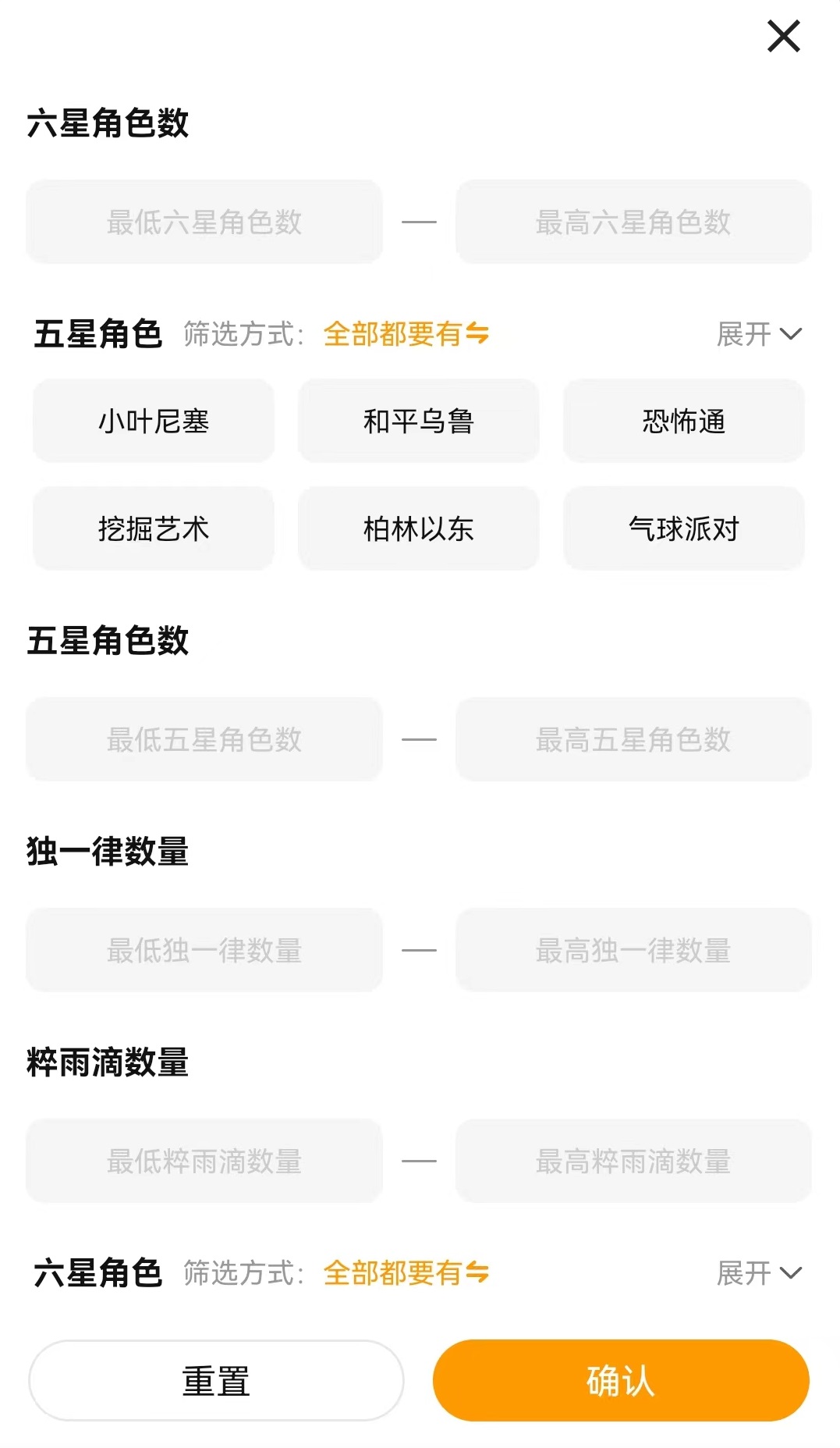 如果在这里购买的是成品号,那么有非常详细展现模板,每一款账号中拥有哪些六星级角色,五星级角色,和当前角色数量以及纯雨滴数量等,都会真实展现出来。这样既可以方便查看里面的真实价值,又可以帮助大家快速进行选择,只需要在这些选项中找出自己适合的内容,直接就能够筛选出来。虽然平台中这一游戏的账号数量非常多,但是有了这样的选择方式,就不用担心错过一些性价比高的商品了。