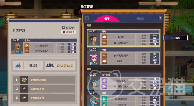 在这个游戏中,分店是不可以随意的更换菜单,只能通过控制食材的方法来有效改变菜单,比如在分店经理下面可以直接按照定制的方法,然后去排序,然后去卖对应的菜。分店员工界面还可以有效确认整个分店的经营方针,主要是按照价格来确定,接着就会运输对应的食材,可以进入到经营的阶段。