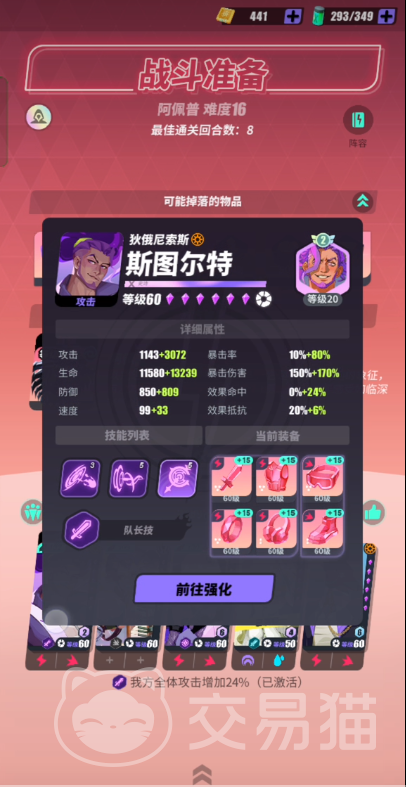 阵容方面一般是1个主C,一个副C,一个治疗,一个辅助,再带一个控这套组合基本可以在保证输出的情况下,提高队伍的生存能力。装备方面个别角色要带命中,有时挂不上破防真的打不动啊。