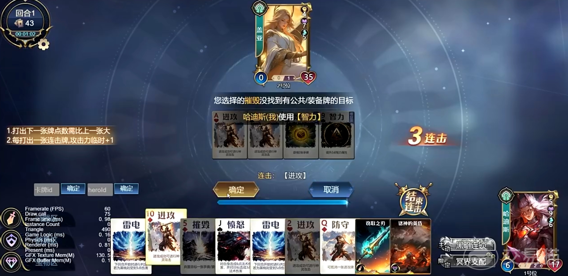当我们选择构筑好自己的卡组之后,便可以在选择自己的神灵作为自己操控角色,开始一场正常的对战了。在行动回合抽完牌之后就可以使用自己公共卡牌当中的攻击卡牌对其他玩家发起攻击,而对面则是可以使用防御来进行抵挡,让攻击无效。如果没有使用防御的话,攻击成功进入追加攻击状态。
