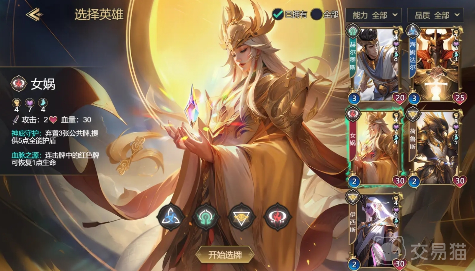 那么首先第一个要介绍的便是神灵卡牌,也是我们主要操纵的角色卡牌。大致整体上可以分为四个阵营,取材各个古老文明的神灵传说原型,每一个都有着属于该阵营独有的画风以及技能特色。