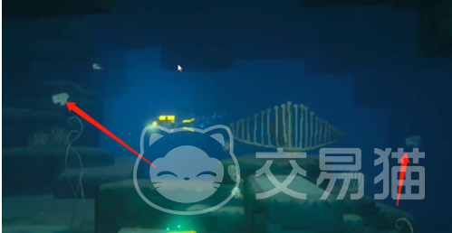 玩家可以从鲛人村的左边出来,然后进入到深海中,一直不停的往左游,此时就可以看到一个拱形洞,在穿越之后还可以朝着上面游行。