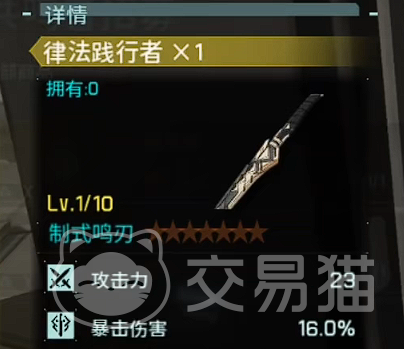 对于新手来说,第一把能选择的武器是一把叫做律法践行者的单手剑太刀类型的武器,该武器可以给初始角色秧秧来使用,对于秧秧来说这把武器可以说是新手阶段最好用的武器了,在装备了该武器之后,属性上她的攻击力和暴击伤害会得到提升,效果上还会吃到一个全共鸣18%的增伤和释放共鸣解放后提升24%攻击的buff。
