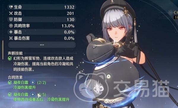 3号位的话则可以考虑带一个奶妈,例如“白芷”,白芷的延奏技能“命源输送”除了可以给场上角色进行持续性的治疗,受到治疗的角色也是可以获得15%的伤害加深,这个加成幅度还是很大的。因此散华加主角加白芷是不错的开荒搭配。武器方面则是有什先用什么了,比如说前期能拿到的“不归孤军”,2个属性都是加攻击的,技能是在释放变奏技能的时候15秒内攻击提升15%,挺不错的,因为散华经常是用变奏技能打重击,重击也是吃攻击力加成的。至于声骸则是尽量去凑出凝夜白霜效果。