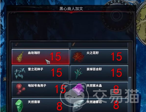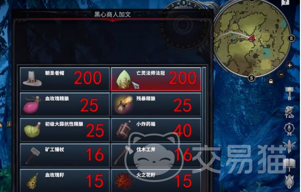 黑心商人这里购买的主要就是各类的工具和材料,还可以购买天然宝石或者是朝圣者的帽子,亡灵法师法冠。如果玩家对这些东西有兴趣,就可以找到商家的所在位置,找到位置之后就可以通过购买的方式获取。
