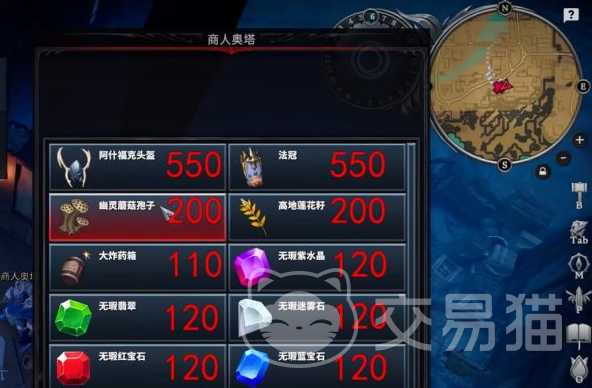 奥塔这一个商人的位置是固定的,并不会出现变化,玩家在这里就可以购买阿什福克头盔另外也可以购买无瑕宝石。