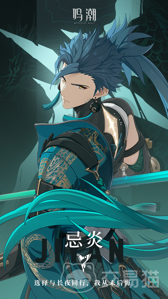这是最近才推出的一个角色,是比较新的一个共鸣者,同时也是游戏里面比较少见的男性角色了,立绘可以看出来是一个帅气的青年形象,他是一个火鸣共鸣者,他的共鸣属性是气动。忌炎在游戏的设定当中,以前是一名医者,后面才转职去做了“夜归团”的团长,这个角色是比较多面的,对家乡的食物有着深刻的情感,讨厌浪费食物。