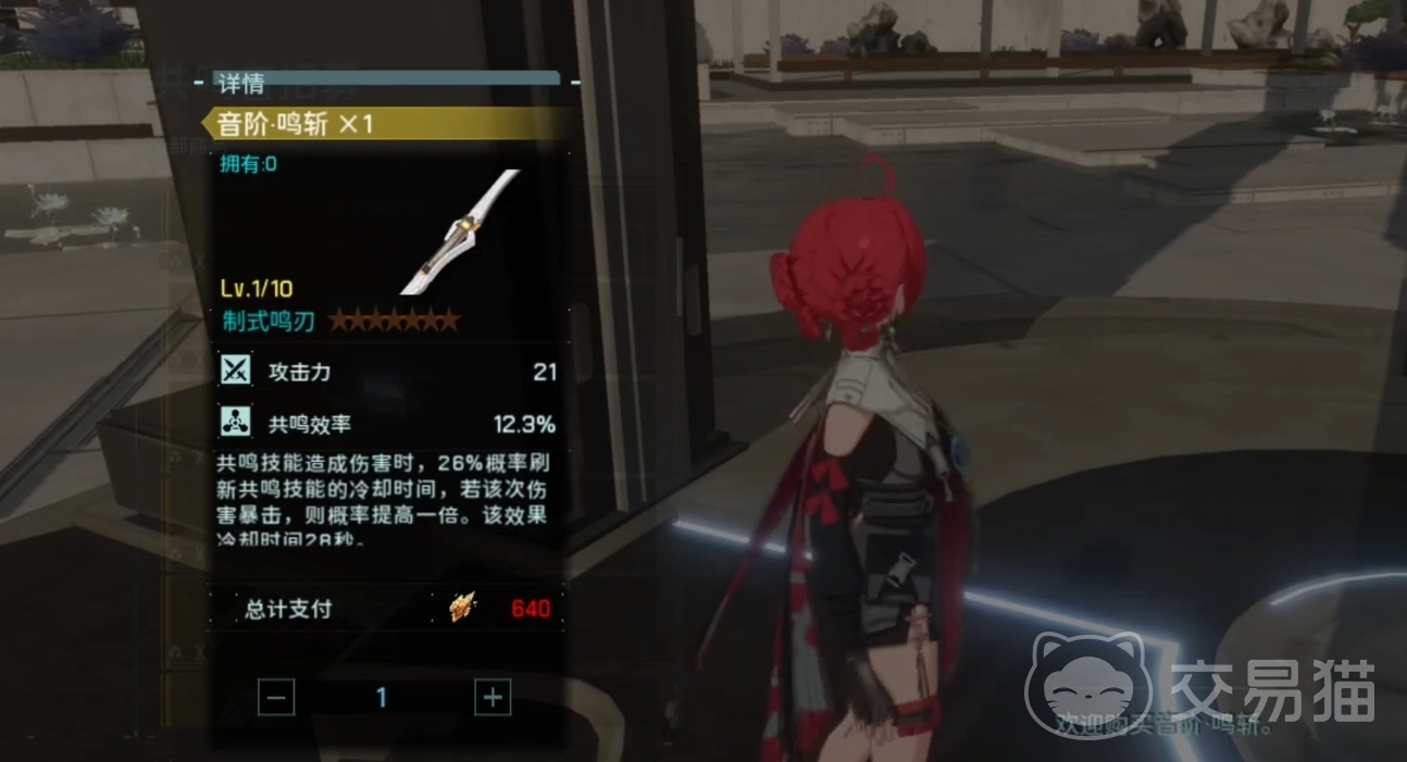 在武器选择方面,先推荐各位使用我们的制式鸣刃音阶铭斩,是目前最好用的单体剑之一。基础攻击21,共鸣效率12.3,在共鸣技能造成伤害的时候,有26%的概率直接刷新我们的共鸣技能冷却时间,此次伤害暴击则会概率再提升一倍,冷却效果28秒。