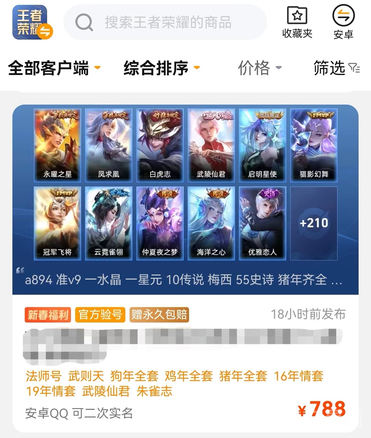 王者荣耀手游是从15年正式公测的,至今已经运营了9年,游戏中也已经更新了超多英雄的皮肤,本期内容小编就带大家瞧瞧,一个王者400皮肤号卖多少钱。皮肤是王者玩家氪金的主要方向,能带给玩家更好的视觉体验和手感,像很多老皮肤特效一般也不能提升价值,这里小编给大家推荐一个APP,适合账号估价还能用于出售账号。