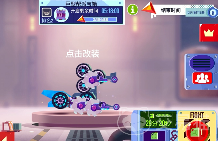 之后是第二部分的玩法,就是游戏的战斗环节了,当大家打造好车辆以后就可以带着车辆前去战斗了,战斗中大家会随机匹配其他玩家,对方同样也会带着自己打造的车辆和你对战,对战中谁的车辆血量先见底,谁就算输。因此如何打造一辆能战胜对手的强力车辆,就是这款游戏的核心乐趣了。