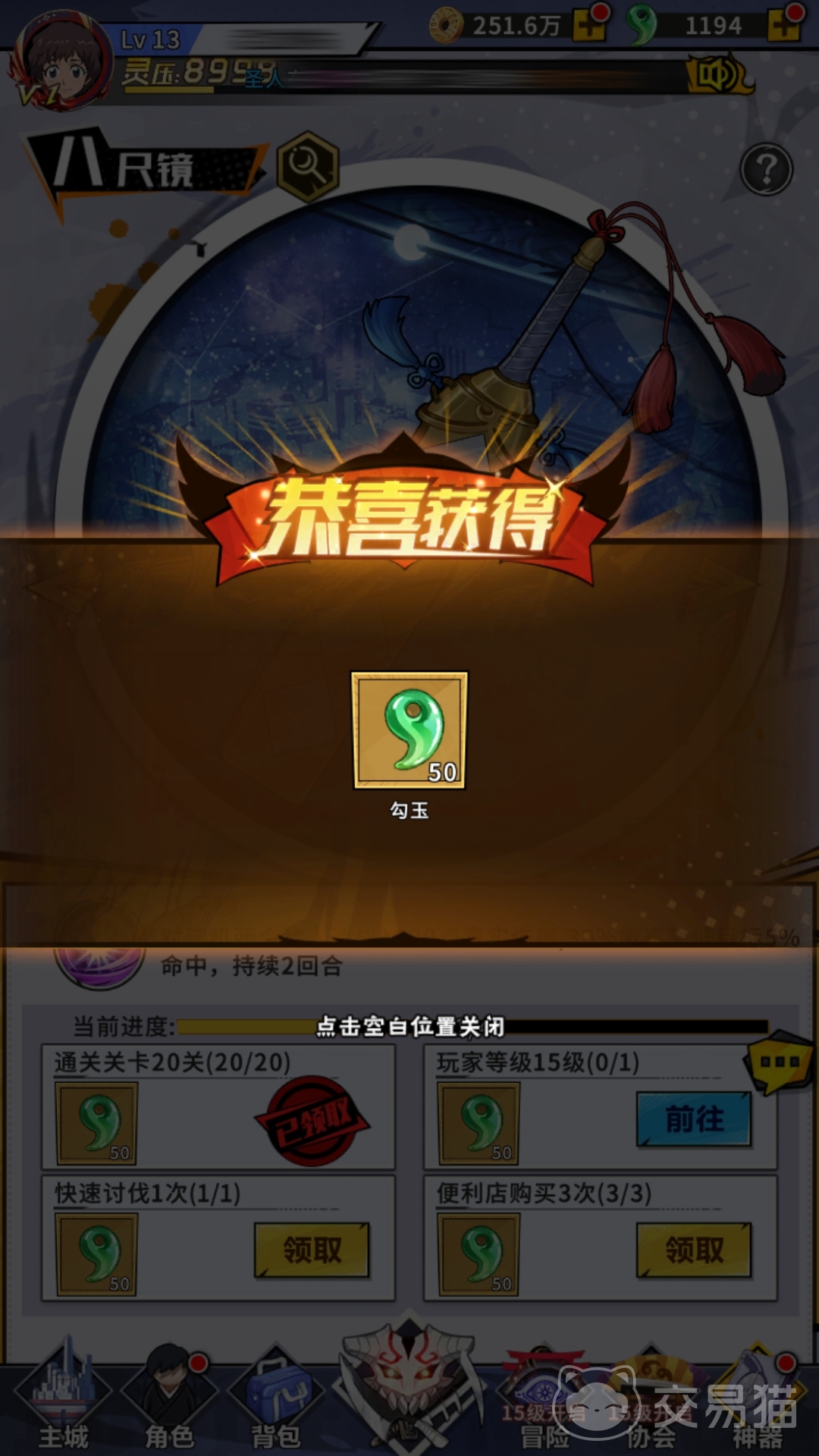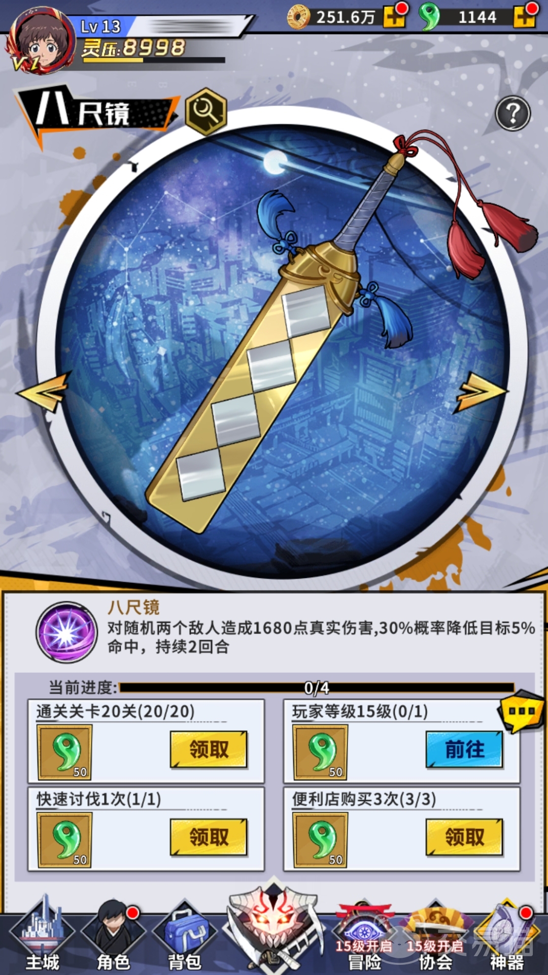 当玩家按游戏的引导解锁了神器的功能后,便可直接通过界面右下角的神器标识进入神器界面,该界面会展示玩家当前正在解锁的神器,以及相应的解锁条件。每完成一个条件后,玩家均能获得一定的奖励。一旦玩家将所有解锁条件全部做完,便可直接完成神器的解锁,该界面也会直接挑战到新的神器解锁页面,并为玩家展示新的解锁任务。