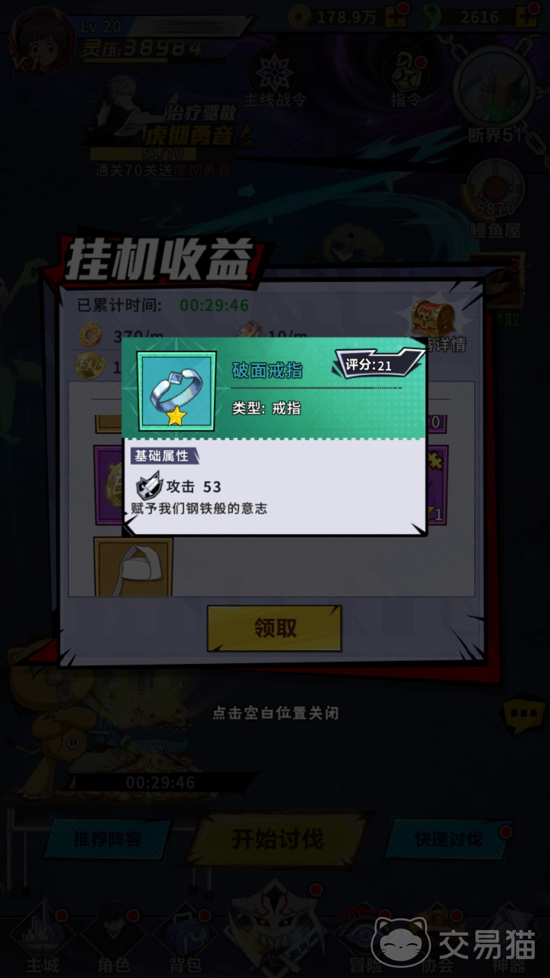 荣耀出征中的装备主要通过活动和挂机获得,其中活动得到的装备次数固定,因而挂机在机制上才是玩家获取装备的主要途径。要注意的是,挂机获得的装备品质与玩家闯过的关卡数呈正比,既玩家闯过的关卡越多,挂机掉落的装备品质越好,因而建议玩家每次进入游戏后即使进行推关,确保能拿满挂机收益。
