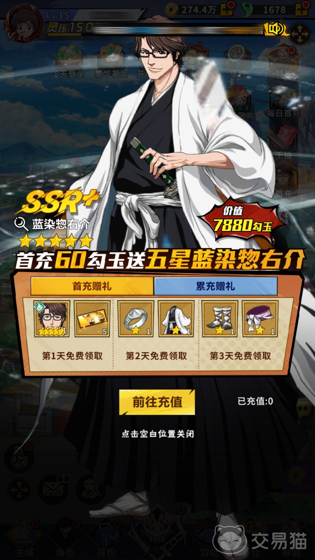对于还处在开荒期的玩家来说,蓝染礼包是最值得氪金的项目,毕竟蓝染在游戏里的强度非常高,前期开荒很好用,在后期也是一个很不错的战力,属于练了就不亏的角色。更何况蓝染礼包还赠送相对应的橙色装备,对于前期装备缺乏的玩家来说是一个很好的补充。