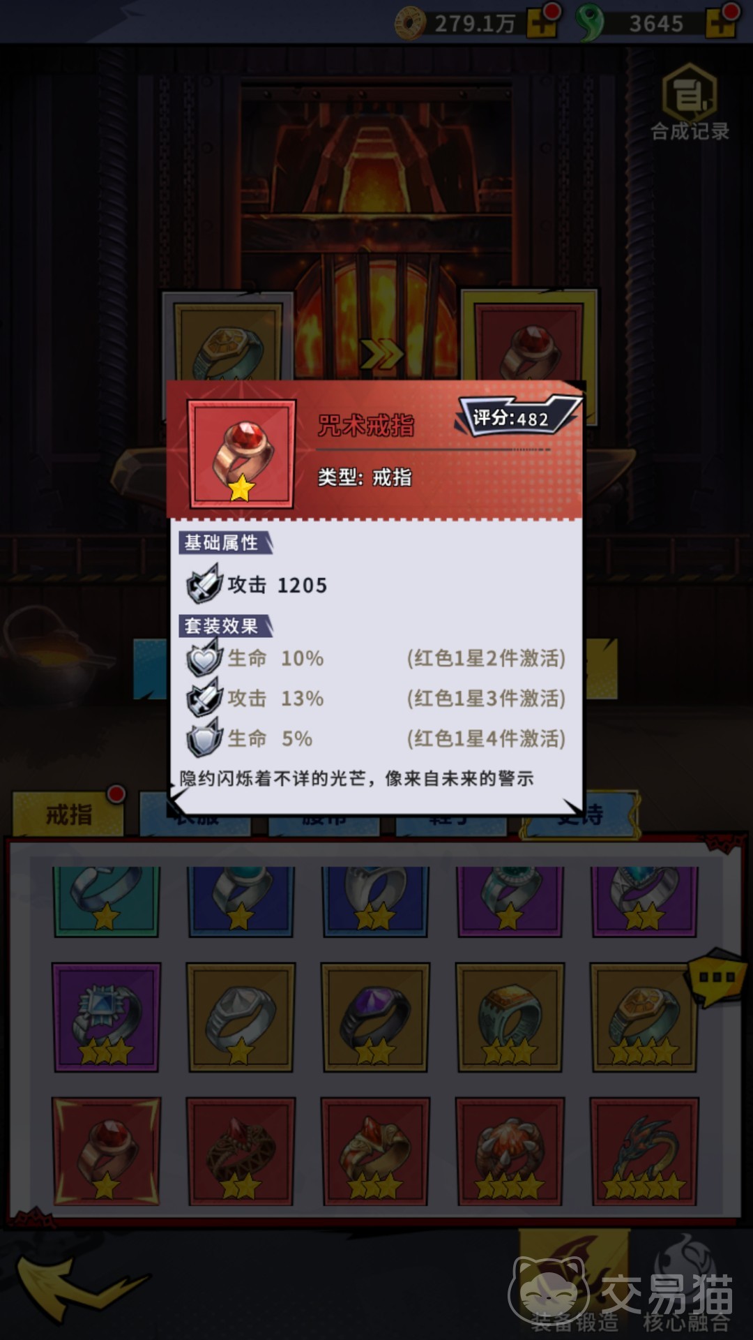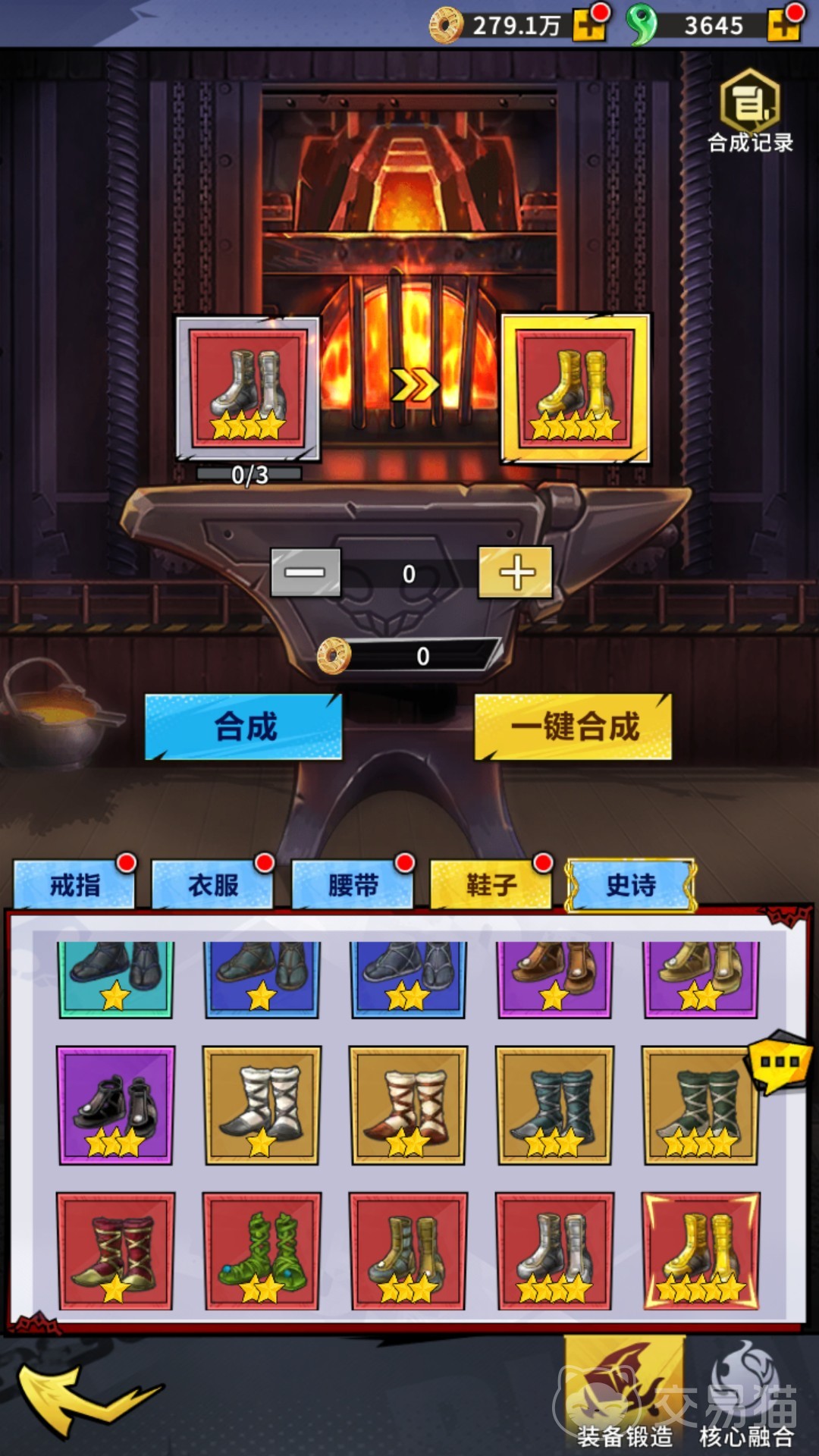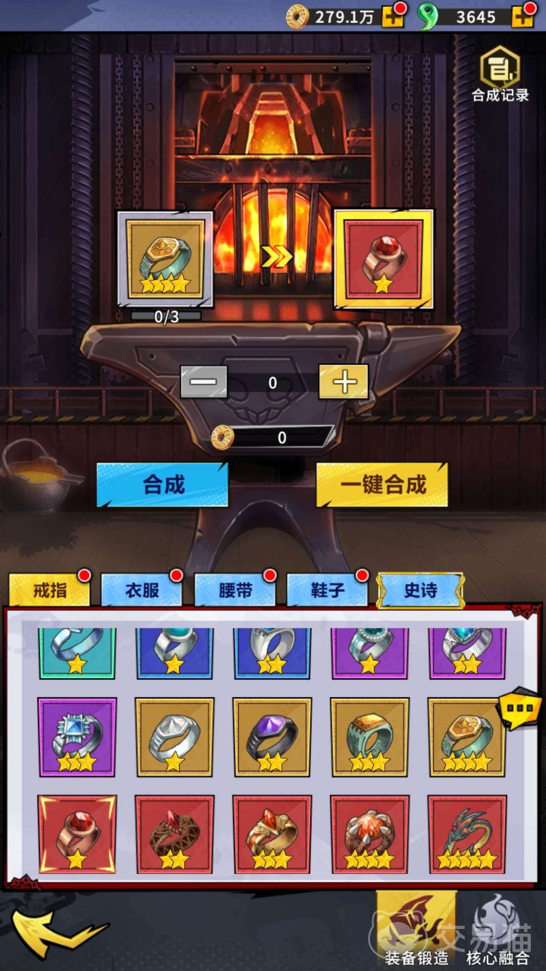而合成则是游戏中最为重要的红装来源途径,玩家可通过挂机来获取低品阶的装备,逐步通过锻造屋的合成功能,把它们合成至红色品阶。目前,若玩家要想合成出一星红装,则需要准备3个同类型的四星金装为材料,而二星红装则要3个同类型的一星红装为材料,往后更高星级的红装也是如此,且最高能合成出五星品质的红装。