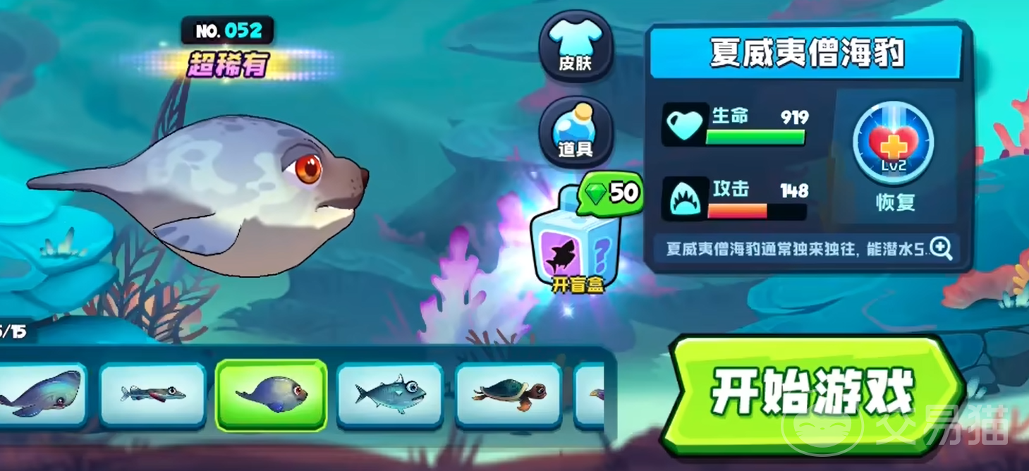 夏威夷僧海豹:这是一只典型的苟分型鱼类,它的基础生命高达919点,对比一种鱼类都形成了完美的碾压,此外它的攻击也有148,属于不低的水准,然后在技能这块其技能为恢复,效果是立即恢复自身15.6%的最大生命值,这个续航的作用还是非常明显的。考虑到他本身血量就够多,所以这15.6%的含金量非常大。