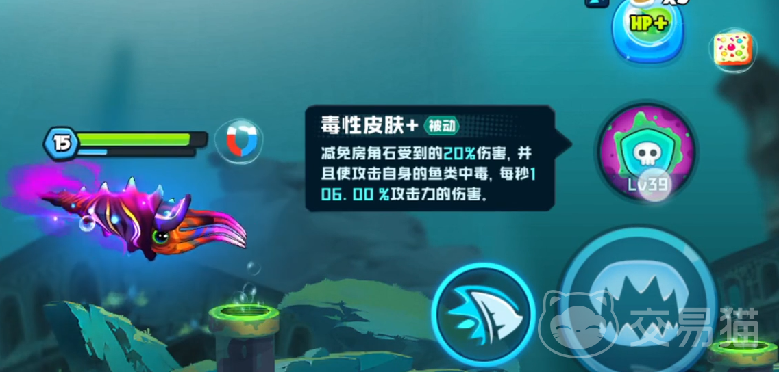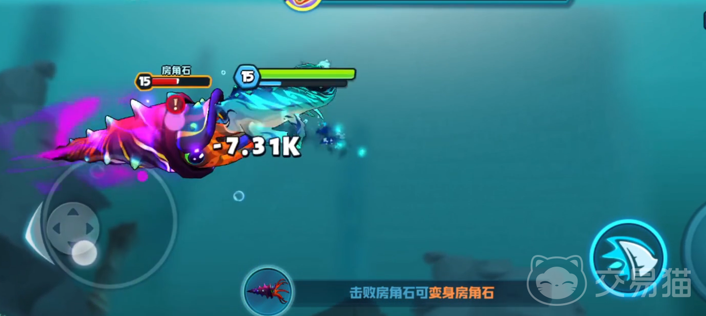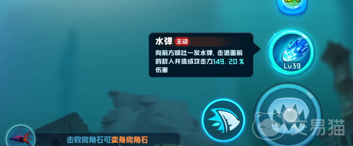 所以最推荐大家带上有远距离攻击手段的鱼,这样的话你的鱼始终可以保持一个安全的距离,从而实现远距离无伤磨死对手,个人最推荐的一个技能就是“水弹”,因为它的伤害非常之高,加成往往能够达到近150%的倍率,面对普通对手时一发水弹稳稳命中,基本上就能收走他的小命,面对boss房角石的话威力也同样可观。