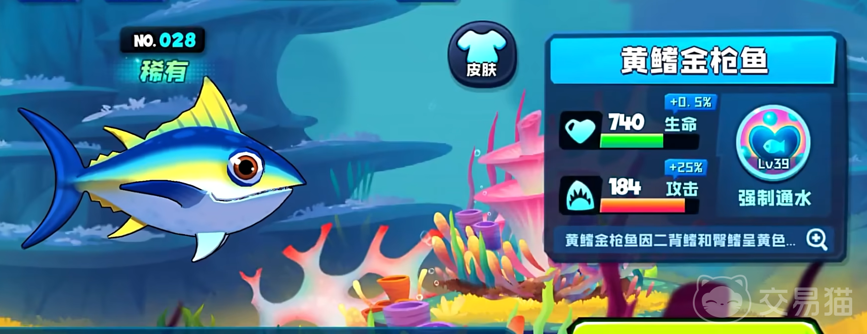 黄鳍金枪鱼:这也是一只续航类型的鱼,它本身的技能是“强制通水”,可以在游动过程中获得额外6%的生命回复,相当于也有了不错的续航加持,对比海马来说算是更容易获得的低位替代品。